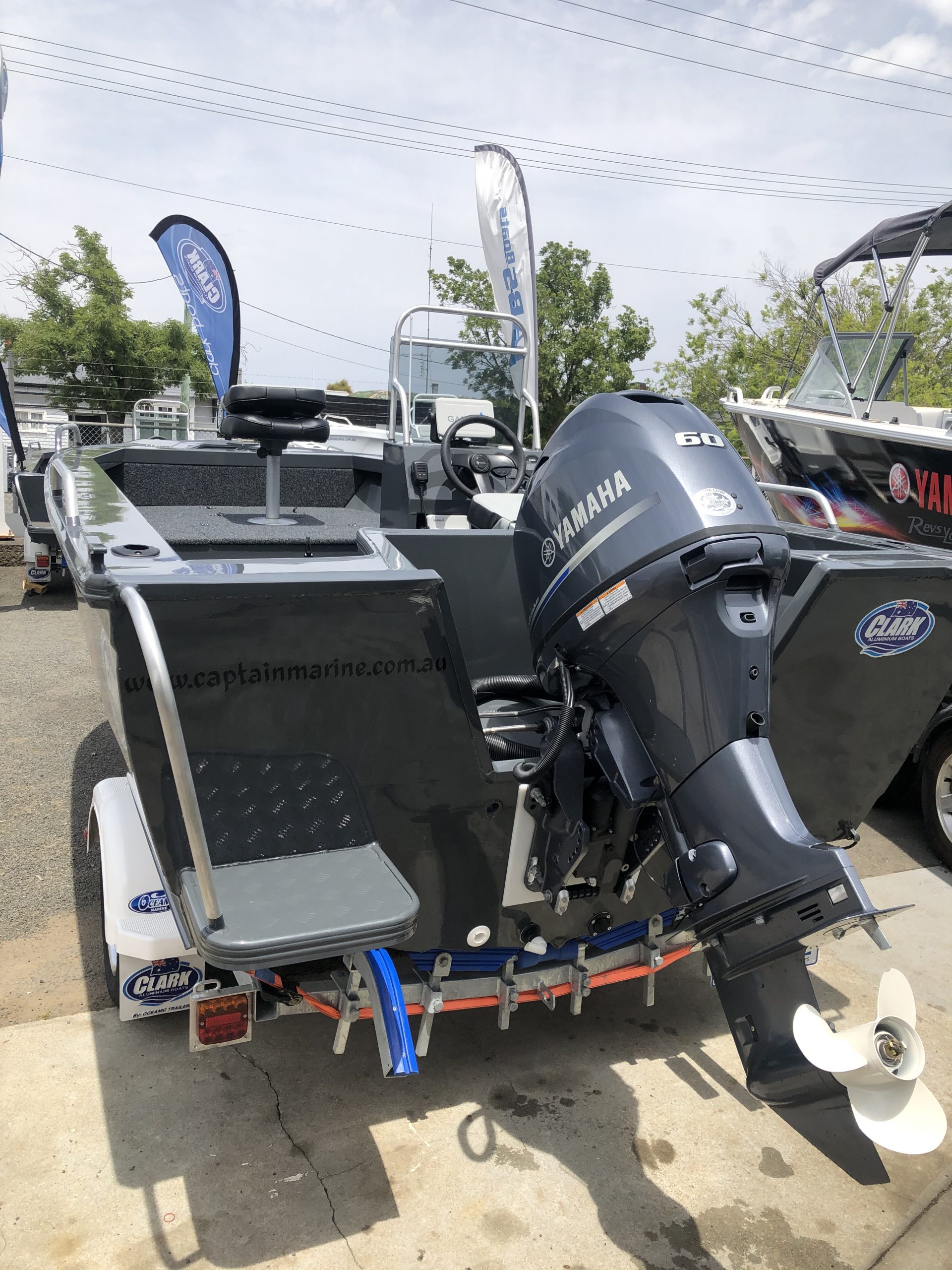 Fitted engine – Yamaha F60LB (60hp 4 stroke), 703 side mount control box, digital LAN gauges, alloy prop.